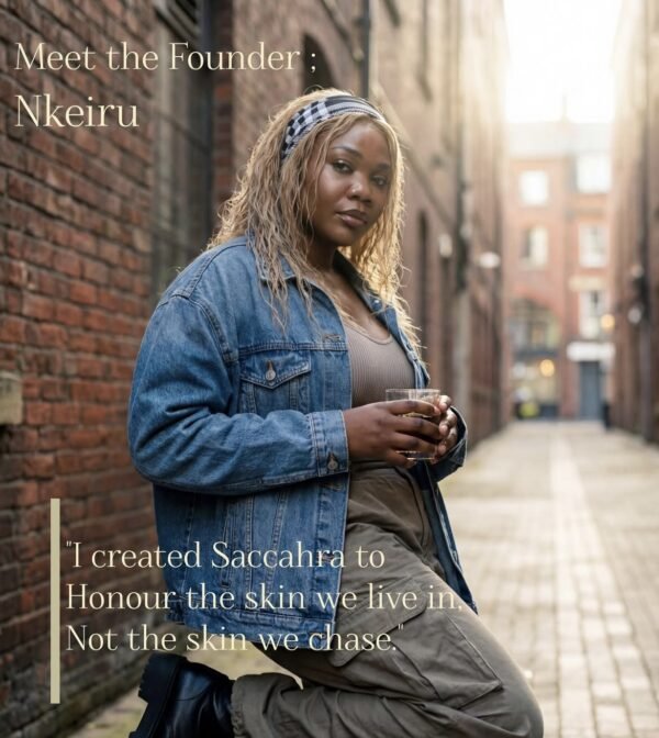 Nkeiru has said that she created Saccahra because she wanted skincare that felt personal. “Not just clean or luxurious, but emotionally intelligent. I needed products that understood the quiet parts: dry skin that tells a story, packaging that feels like care, formulas that don’t just perform but comfort.” She is involved in every detail- from the ingredients to the way the order arrives. It is a brand built by hand, by heart, and by someone who believes that skincare should feel like it sees you.