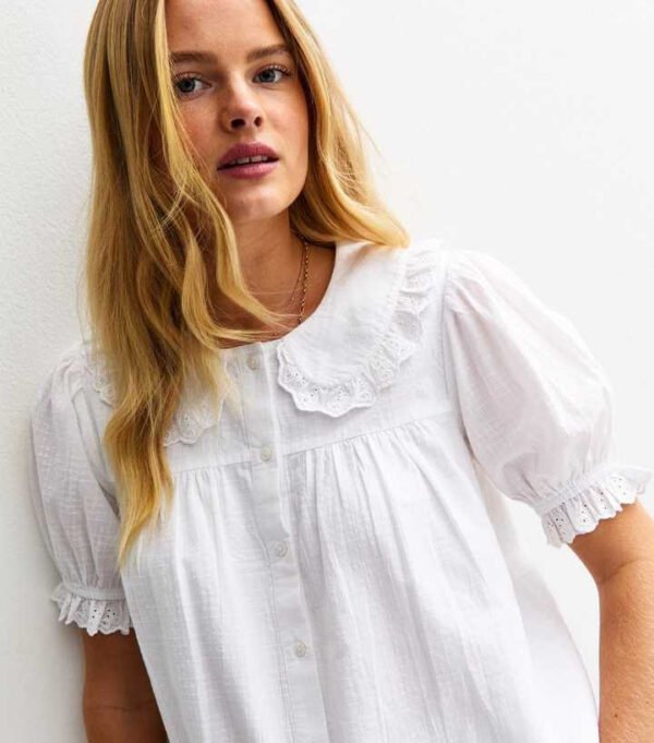 Off White Collared Lace Trim Blouse – £23.99