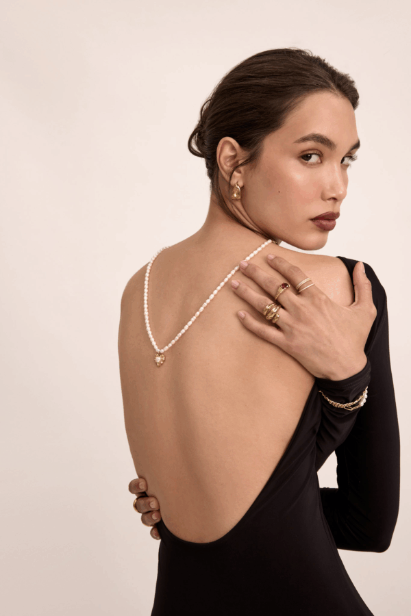 This trend reflects a wider shift in how jewellery is worn. Pieces are no longer just about adorning the neckline or wrists, they are designed to tell a story from every angle. A well-placed back necklace can elevate even the simplest slip dress, transforming it into a show-stopping party look.