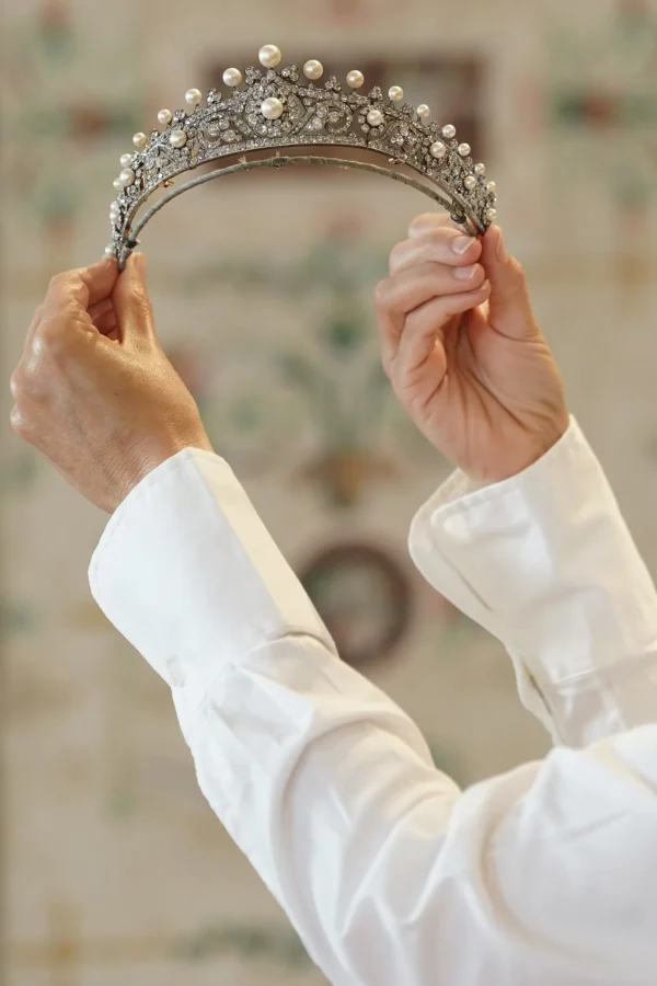 Maxwell Stone commented: “Crafted by the renowned royal jeweller Garrard at the close of the 19th century, the Airlie Tiara is an exquisite piece adorned with over 30 carats of diamonds. Its intricate design features diamond-set motifs of daisies, clovers, and ivy leaves, accented by lustrous pearls – two of which are natural saltwater, a rare and highly prized type known for their exceptional quality and brilliance.