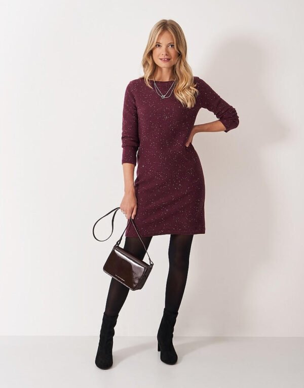 This is a perfect addition to wear with any skirts or trousers and features colours such as bright pink and grey. This gorgeous Cara Knitted Dress offers both warmth and style, with all-over sparkle. Perfect with a pair of tights and knee-length boots.
