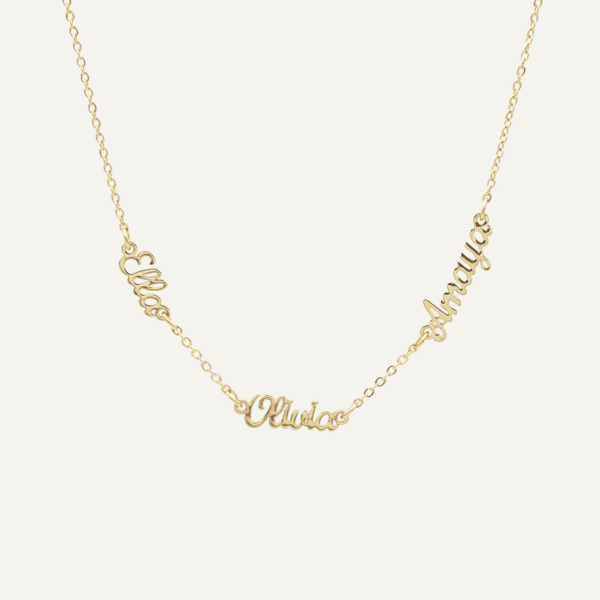 PRYA’s signature Miami Multiple Name Necklace lets you customise up to five names in a sleek, modern font — the perfect tribute to family, friends, or self-expression. Available in 18K gold, rose gold, or silver, the design is tarnish-free, water-resistant, and made to last.