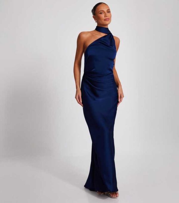QUIZ Navy Asymmetric Satin Maxi Dress