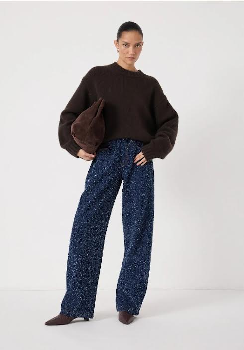 She’s loved – and for good reason. These embellished barrel-leg jeans from Hush prove that denim can be fun and fit for occasionwear. All it takes is a little sparkle and great shape to turn them into a true standout option – that works perfectly with cosy knit and leather sock boots