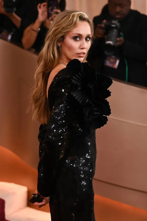 Miley Cyrus added a pop of colour with a Tiffany & Co. emerald pendant, showing how gemstones can inject playfulness into a classic diamond-focused look.