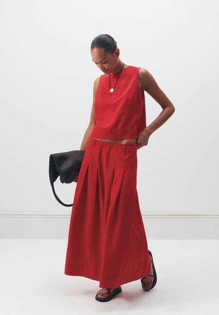 Ivy Pleated Linen Blend Midi Skirt