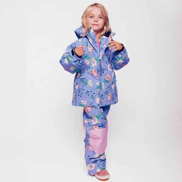 Winter coat with birds and flowers